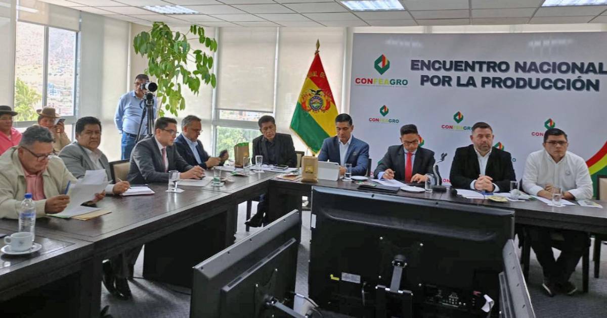 Tras la reunión sostenida este martes entre representantes de la Confederación Agropecuaria Nacional (Confeagro) y los ministros de Desarrollo Productivo y de Trabajo, Óscar Mario Justiniano y Edgar Morales, respectivamente, se firmó un acuerdo de cuatro puntos enfocados en el corto plazo.