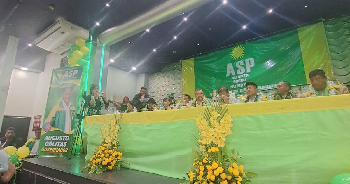 Alianza Social Patriótica (ASP), presentó a su candidato para la Gobernación de La Paz, Augusto Oblitas; y a los candidatos para la Alcaldía de la Paz, Javier Iturralde; y la Alcaldía de El Alto, Omar Pati.