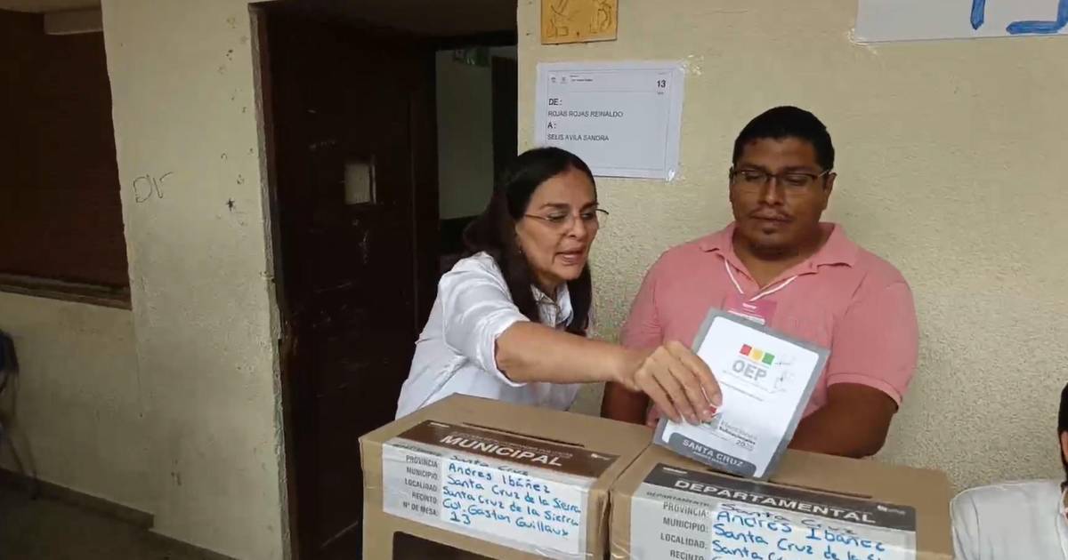 La candidata votó en la unidad educativa Gastón Guillaux, ubicada en el primer anillo de Santa Cruz de la Sierra.