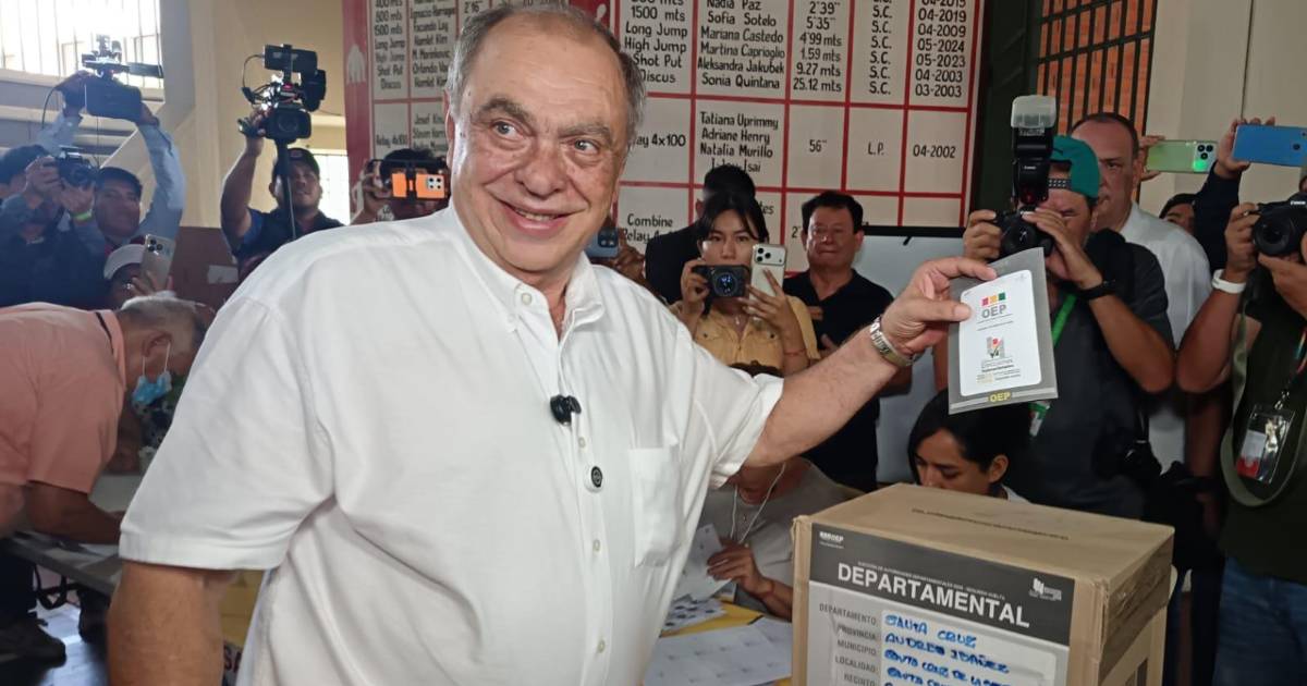 El candidato a la Gobernación cruceña acudió a las urnas cerca de las 10:00 horas para emitir su voto y luego acompañar a su compañera de sigla y asambleístas