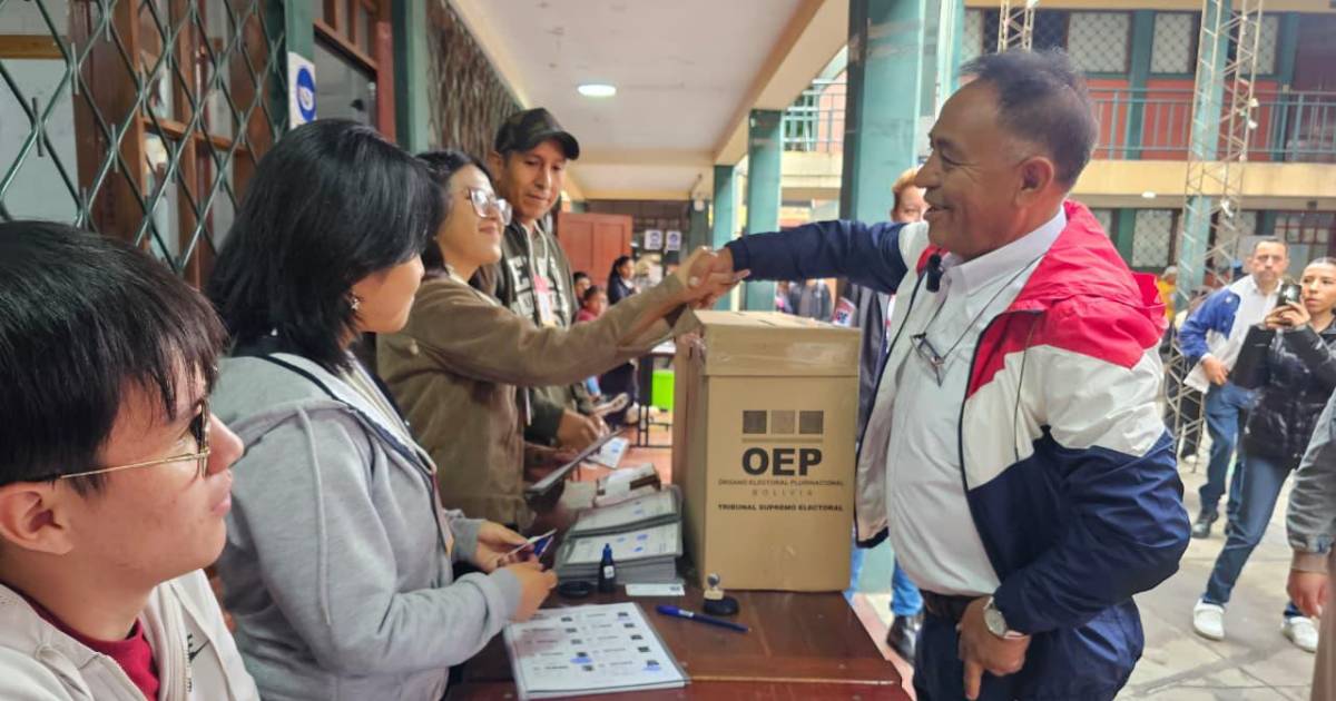 El candidato a la Gobernación de Cochabamba acudió a su recinto de votación en pleno centro de la ciudad para ejercer su derecho ciudadano