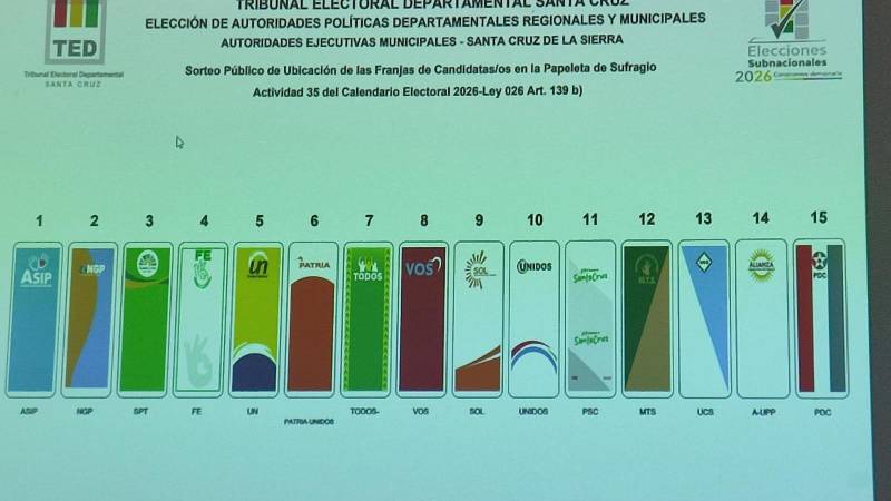 El Tribunal Electoral Departamental (TED) de Santa Cruz sorteó la ubicación de las agrupaciones políticas en las papeletas para las elecciones subnacionales, que se realizarán el 22 de marzo de este año.
