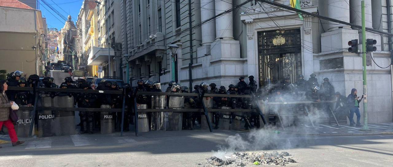 Evistas se retiran de plaza Murillo tras gasificación y la Policía reporta dos uniformados heridos