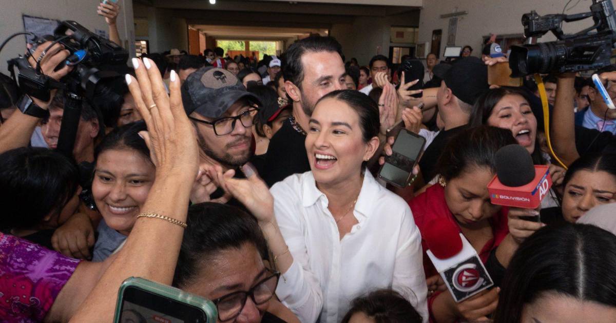 La candidata a vicegobernadora de Santa Cruz, Paola Aguirre, se emocionó hasta las lágrimas cuando recibía saludos al acudir a emitir su voto en una unidad educativa Sor María Cristina Pérez ubicada en Guaracachi.