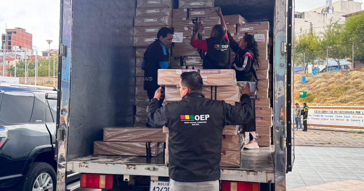 La mañana de este sábado los Tribunales Electorales Departamentales de Santa Cruz, Chuquisaca, Tarija, Oruro y Beni activaron la distribución del material electoral en las zonas urbanas, como último paso antes del día de la votación.