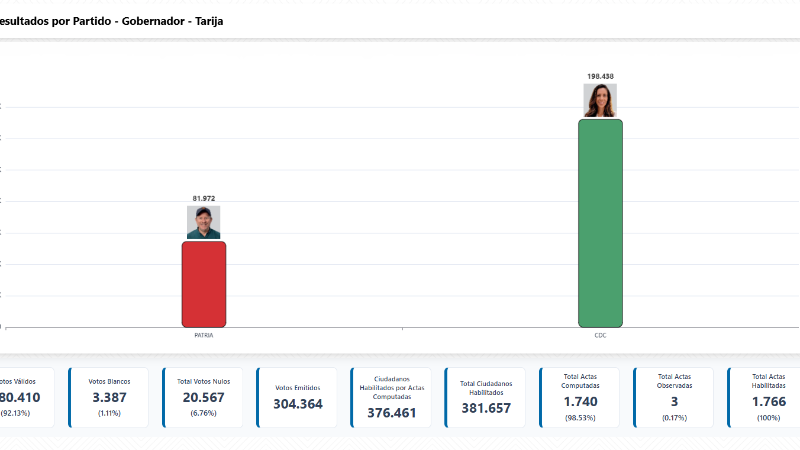 Resultados preliminares al 99,66%: María René Soruco es la nueva gobernadora de Tarija
