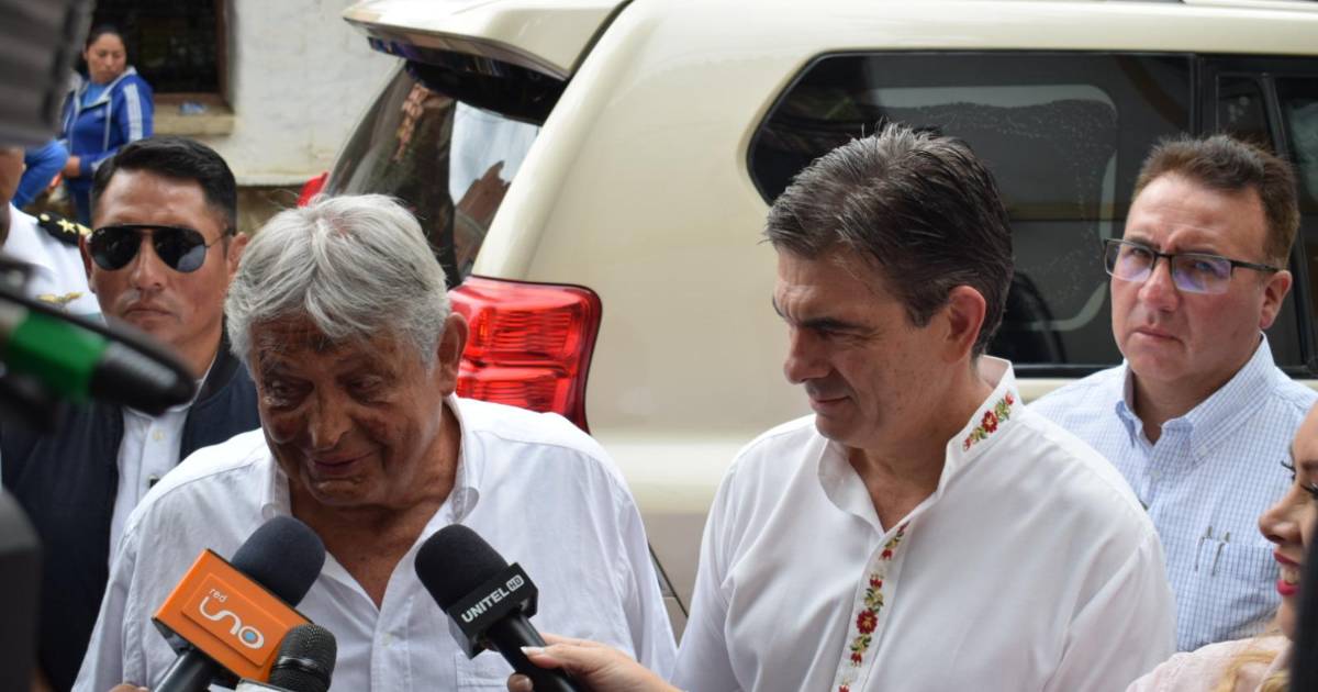 Rodrigo Paz compaña a su padre, el expresidente Jaime, a votar en Tarija