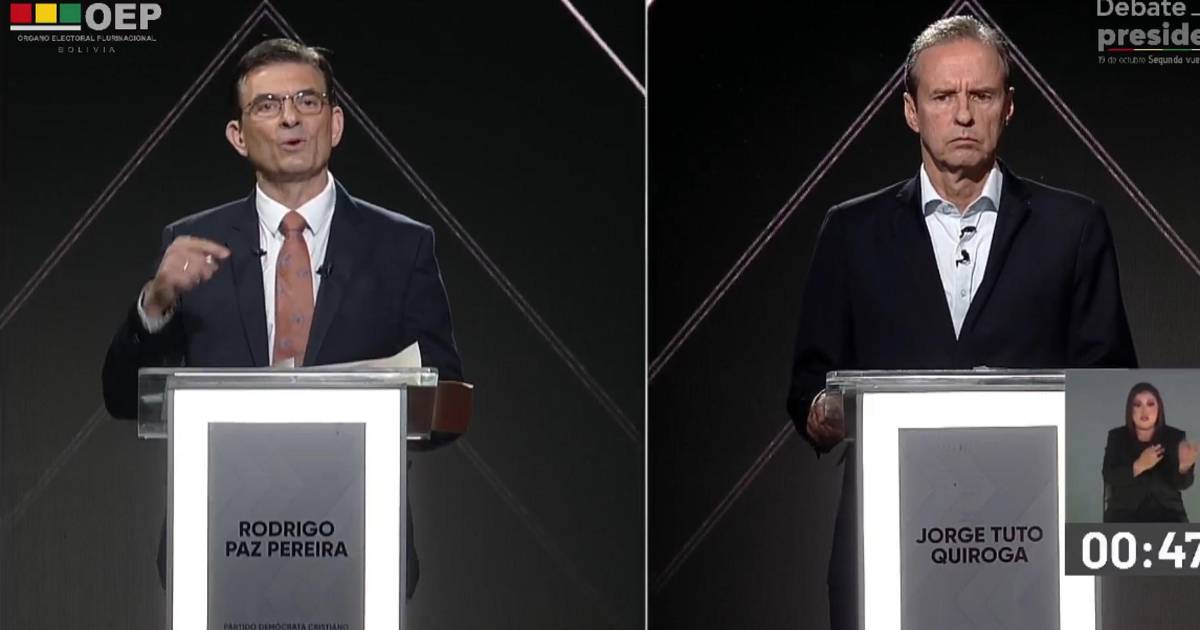 En el debate presidencial Rodrigo Paz, del Partido Demócrata Cristiano (PDC), y Jorge Tuto Quiroga de la alianza Libre, debatieron sobre las medidas para mitigar la crisis