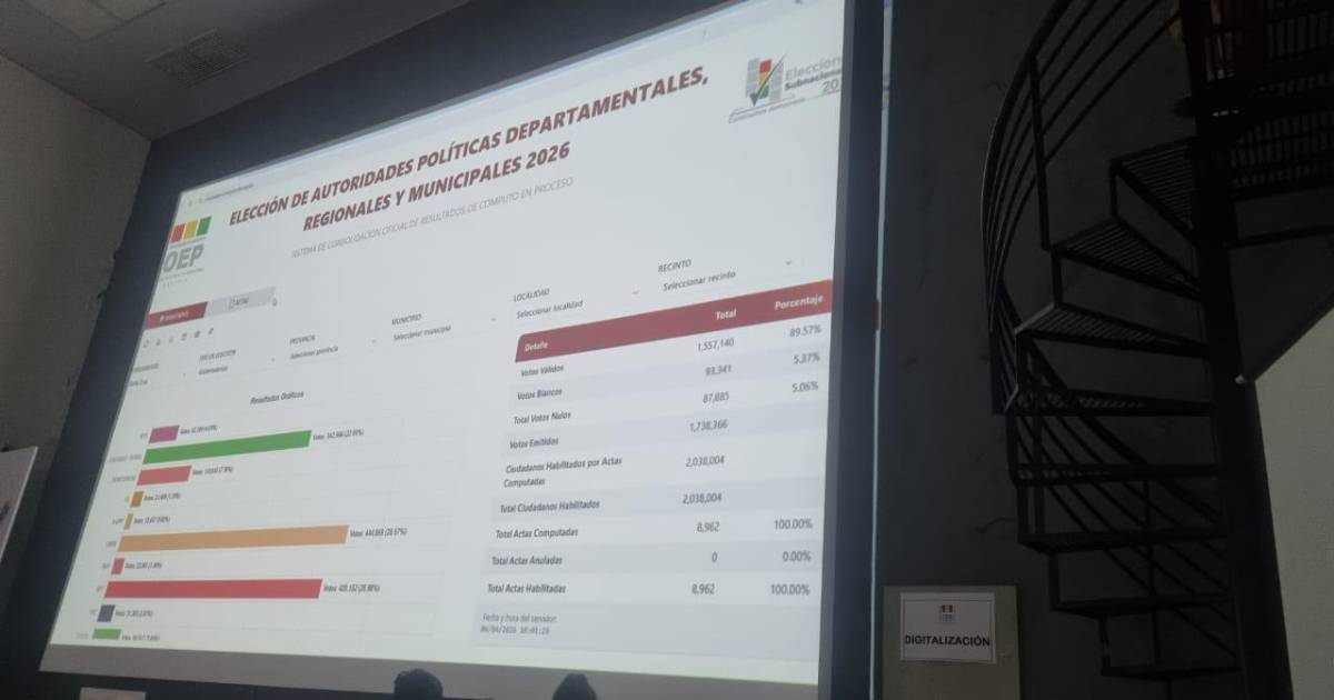 Los departamentos que también irán a balotaje son: Chuquisaca, Oruro, Tarija y Beni.