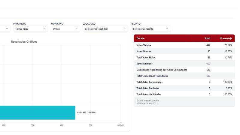 Según el cómputo oficial de las actas de los comicios en esta región, el único candidato habilitado era Widne Walter Amaru Visa, de la Alianza Patria Oruro, que sumó 157 votos, lo que representa el 100% del respaldo electoral.