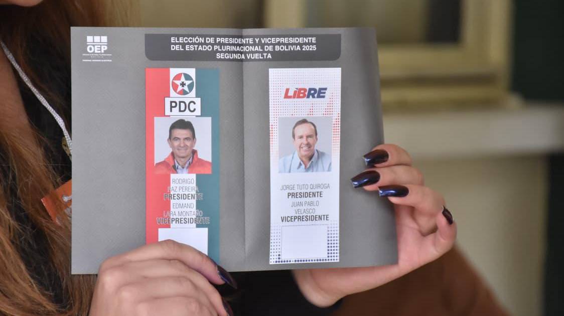 En el Sistema de Resultados Preliminares (Sirepre), el candidato del PDC, Rodrigo Paz, aparece con un 54,61% frente al 45,39% de los votos alcanzados por el candidato de la alianza Libre, Jorge Tuto Quiroga.