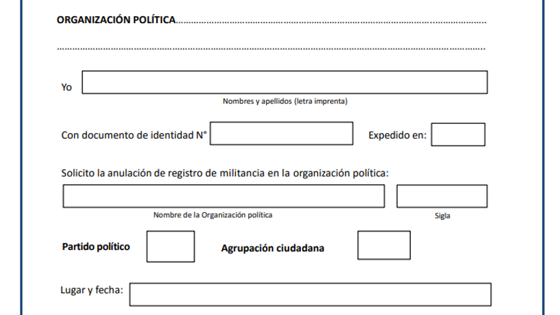 Los ciudadanos que deseen anular su militancia pueden descargar el documento desde la plataforma “Yo participo” y presentarlos en los Tribunales Departamentales de su región