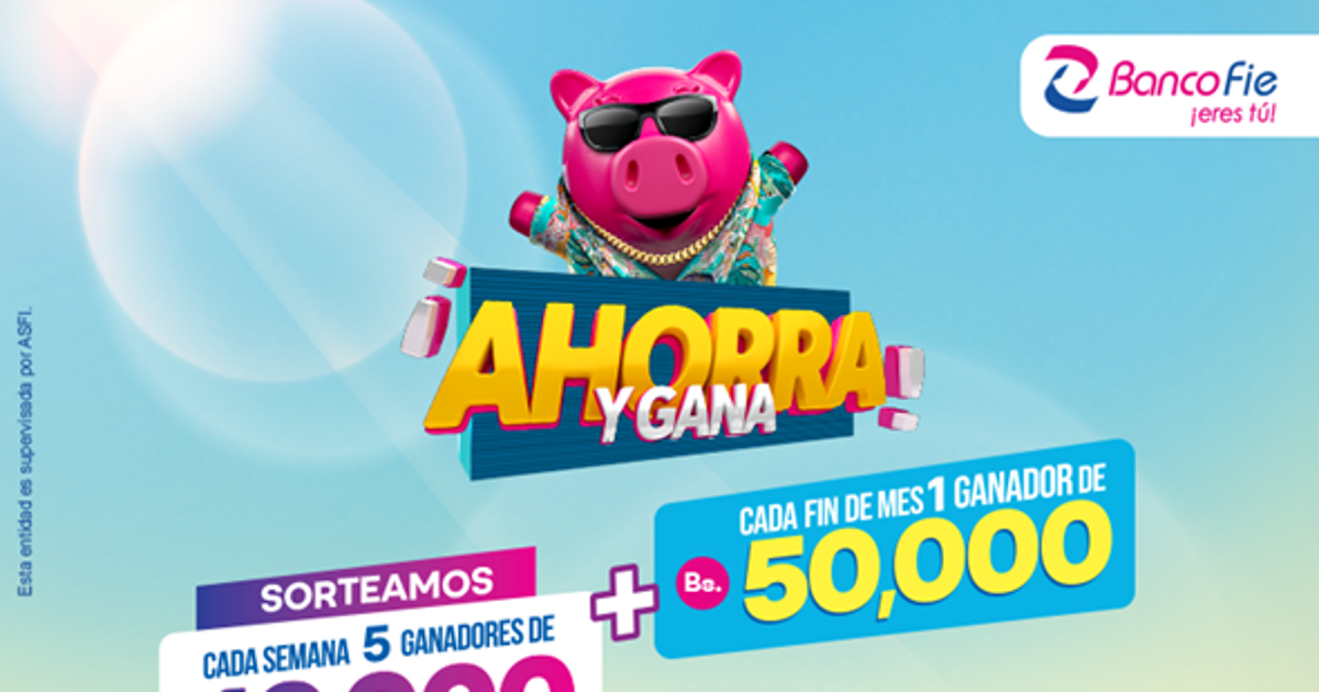 La Promo “Ahorra y Gana” de Banco FIE está dirigida a personas naturales que tengan Cuentas de Ahorro, Depósitos a Plazo Fijo o Cuentas Individuales en bolivianos. Por cada Bs. 100 que permanezcan en tu cuenta de ahorros se genera un cupón digital y, si se trata de un Depósito a Plazo Fijo, las oportunidades se multiplican por cinco, lo que aumenta las posibilidades de obtener uno de los premios semanales o mensuales.