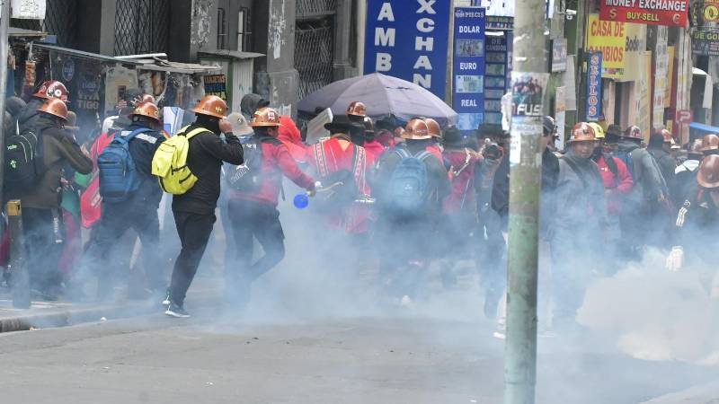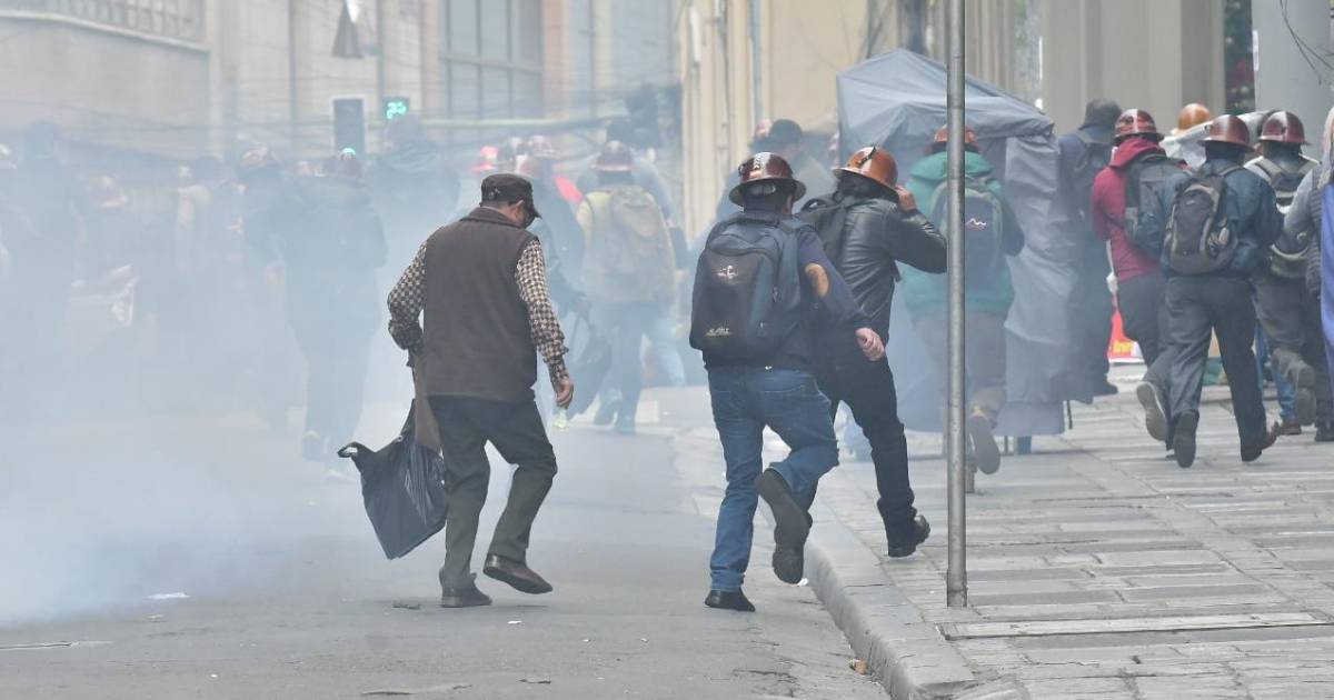 A causa de las explosiones por parte de los mineros, efectivos de la Unidad Táctica de Operaciones Policiales (UTOP), se encuentran movilizados en inmediaciones de la Plaza Murillo, donde un contingente policial evita el ingreso de los movilizados y del público en general.