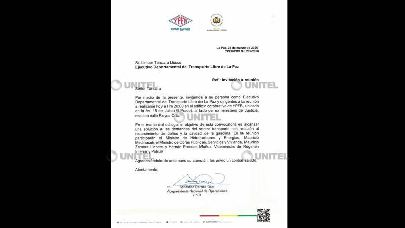 La convocatoria fue dirigida al ejecutivo departamental del sector, Limber Tancara, y a sus dirigentes, citándolos a las 20:00 en el edificio corporativo de YPFB, ubicado en la avenida 16 de Julio (El Prado paceño), con el objetivo de abrir un espacio de diálogo en medio de la escalada de medidas de presión.