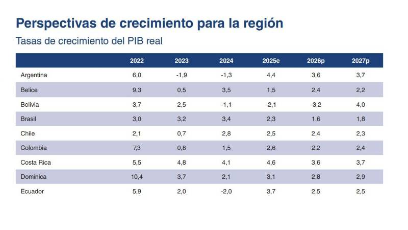 Según el reporte, se proyecta que América Latina y el Caribe crecerá un 2,1% en 2026, por debajo del 2,4% registrado en 2025. Mientras que el crecimiento regional para 2027 se proyecta en un 2,4%.