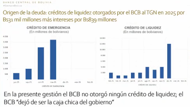 Se trata de un “crédito extraordinario del BCB al TGN 2026” con base en la Ley Financial 1705 que entró en vigencia el 31 de diciembre de 2025.