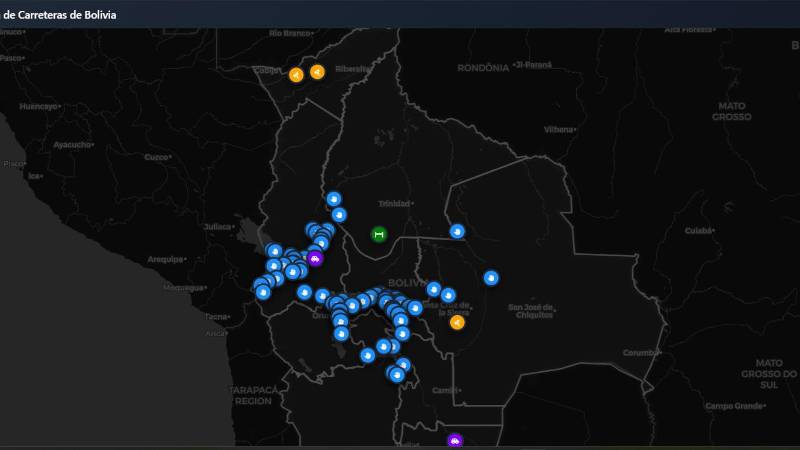 Según el mapa de transitabilidad de la Administradora Bolivia de Carreteras, este domingo se registra un total de 69 puntos de bloqueos que se distribuyen en cinco departamentos del país y que golpean principalmente las rutas de La Paz y Cochabamba, donde se mantiene el cerco.