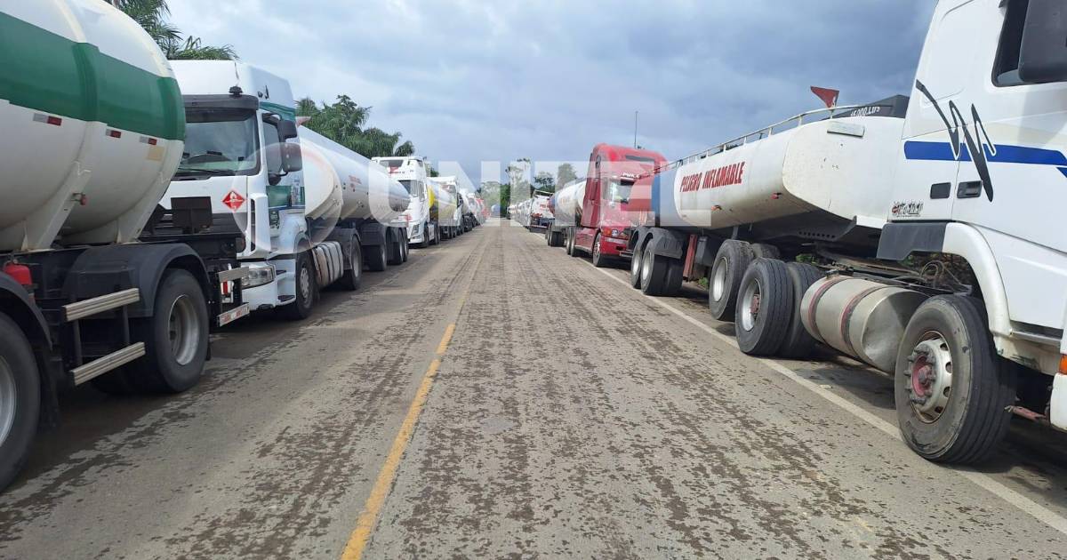 En un contacto con los conductores, afirmaron que algunos llegaron hace tres días desde Argentina con diésel y gasolina, sin embargo, aún no han podido descargar los carburantes.