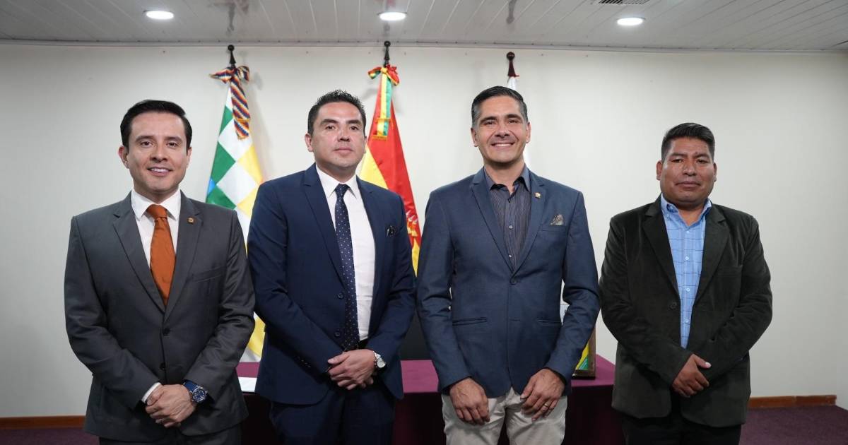 El ministro interino de Desarrollo Productivo, Óscar Mario Justiniano, posesionó a las nuevas autoridades viceministeriales de la institución: René Villavicencio Quispe, como viceministro de la Micro, Pequeña Empresa y Artesanía; Gustavo Adolfo Jáuregui Gonzales, como viceministro de Comercio y Logística Interna; y Gustavo Rodolfo Serrano Osorio, como viceministro de Políticas de Industrialización.