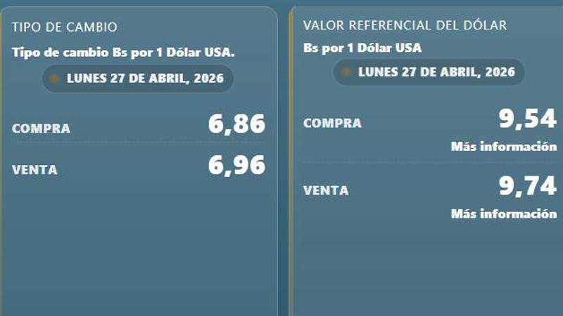 Este lunes 27 de abril, el valor referencial del dólar publicado por el Banco Central de Bolivia (BCB) llegó a Bs 9,74 para la venta y Bs 9,54 para la compra, el registro más alto desde la vigencia de este indicador.