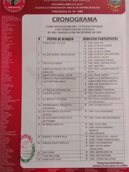 Estos son los más de 80 puntos de bloqueo en La Paz y El Alto; choferes rechazan la eliminación de la subvención
