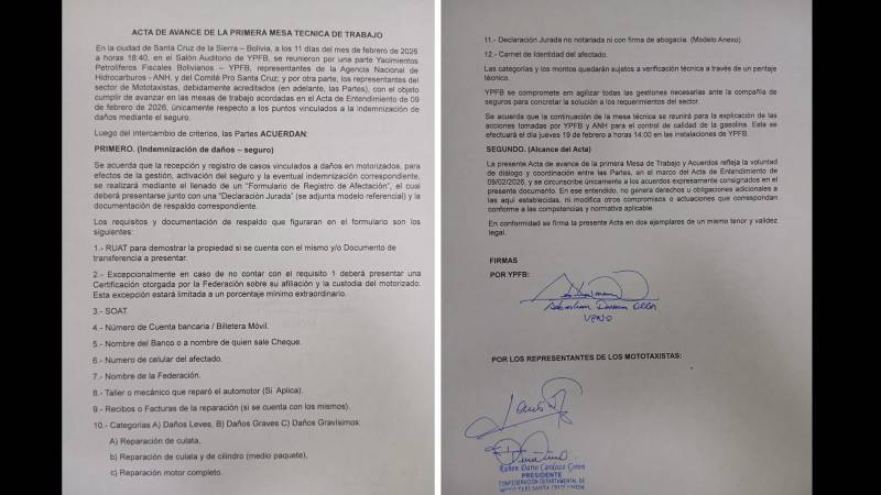 Tras las mesas técnicas instaladas este miércoles entre representantes de Yacimientos Petrolíferos Fiscales Bolivianos (YPFB) y dirigentes del sector de mototaxis, se acordó que haya una indemnización para cubrir los daños a motores que fueron atribuidos a la gasolina ‘desestabilizada’ que se distribuyó en el país.