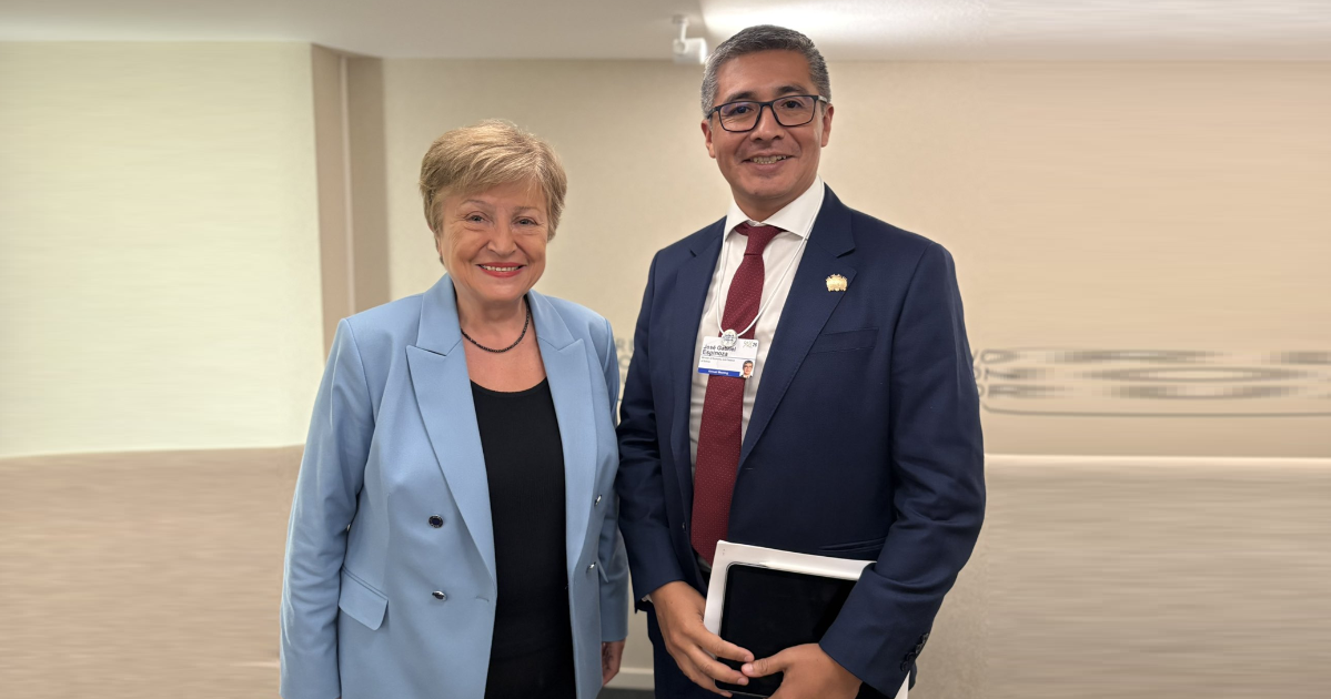 Desde el Fondo Monetario Internacional (FMI) expresaron su respaldo a los esfuerzos del Gobierno boliviano orientados a mejorar las condiciones de vida de la población, en el marco de una reunión sostenida entre su directora gerente, Kristalina Georgieva, y el ministro de Economía, José Gabriel Espinoza.