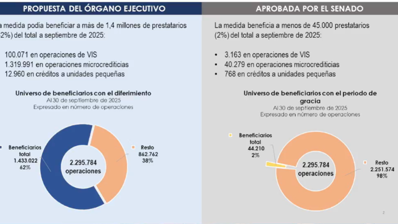 “Se habla de prestatarios en mora, que es distinta a una política de diferimiento”, señaló y precisó que “de tal manera que el número de beneficiarios que originalmente alcanzaba a 1,433.000 se reduce 44,210”.