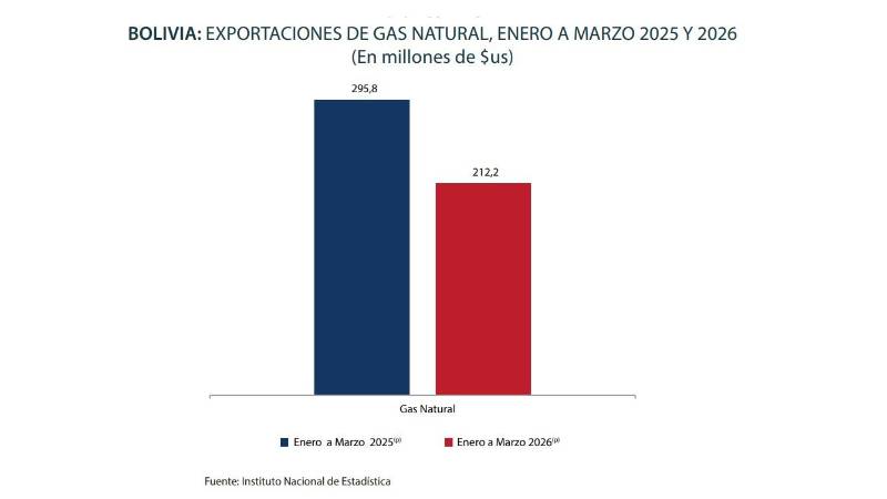 Los datos estadísticos del INE también reflejan que en el año 2025, las exportaciones gasíferas alcanzaron los $us 1.076,8 millones, mientras que en el periodo 2024 la cifra fue de $us 1.614,7 millones y de $us 2.049,7 millones en 2023.