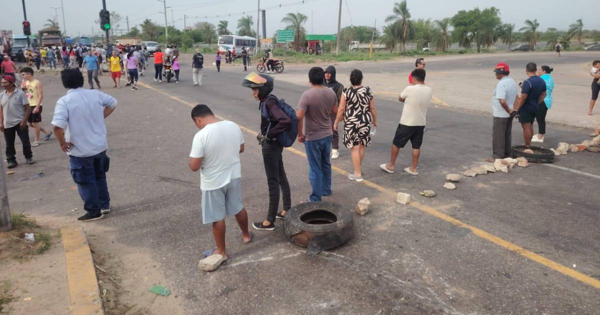 A pocos metros se observan piedras a lo ancho de la carretera y en el lugar se encuentra otro grupo de personas impidiendo el paso por esta vía.