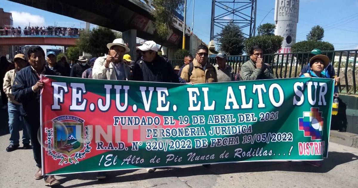 Los movilizados cortaron el tránsito de vehículos en la ruta principal que une a La Paz con esa urbe y el aeropuerto internacional. Advierten con más movilizaciones si el Gobierno no anula el decreto que norma las medidas económicas frente a la crisis.