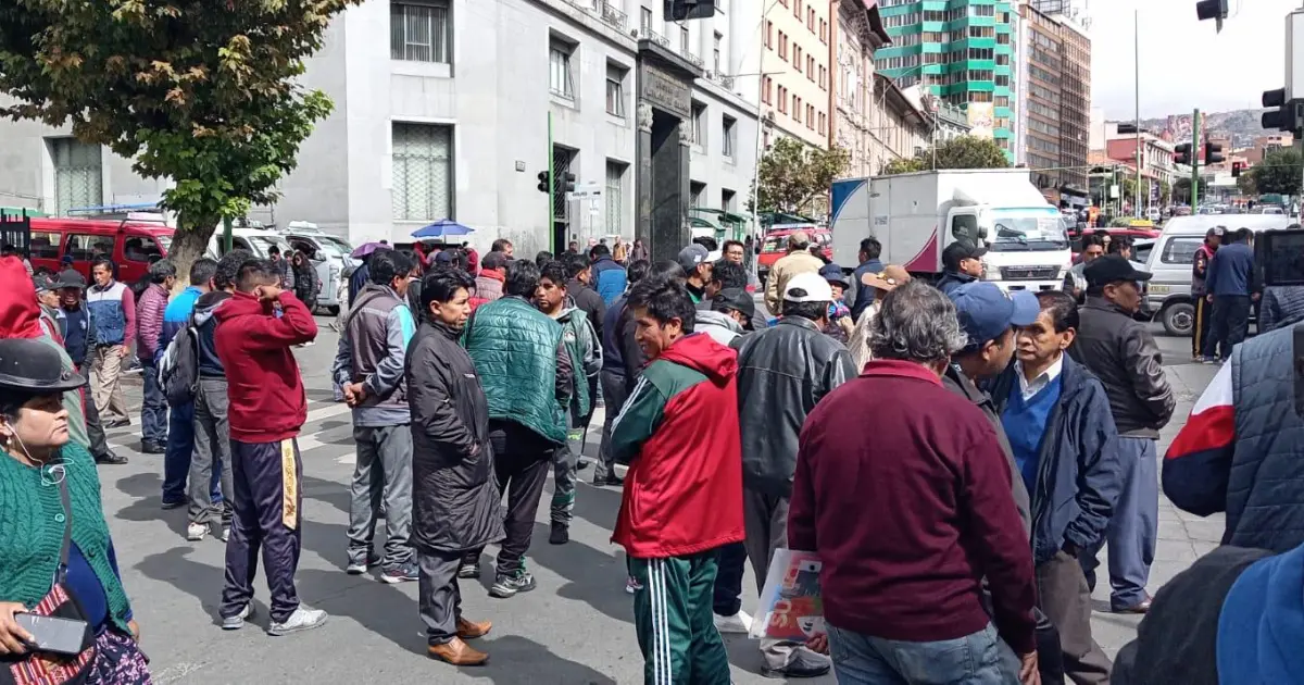 Los choferes del transporte público de La Paz cortaron este miércoles después de las 10:00 la circulación de vehículos por la avenida Mariscal Santa Cruz, en el sector de la plaza del Obelisco, a la espera de la reunión con el Gobierno sobre el resarcimiento por la gasolina desestabilizada.
