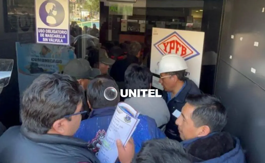 A las oficinas de Yacimientos Petrolíferos Fiscales Bolivianos (YPFB) de la capital orureña llegaron Lucio Gómez, secretario ejecutivo de la Confederación Sindical de Choferes de Bolivia (CSCB), Jhonny Valdivia de Transporte Libre y otros representantes.