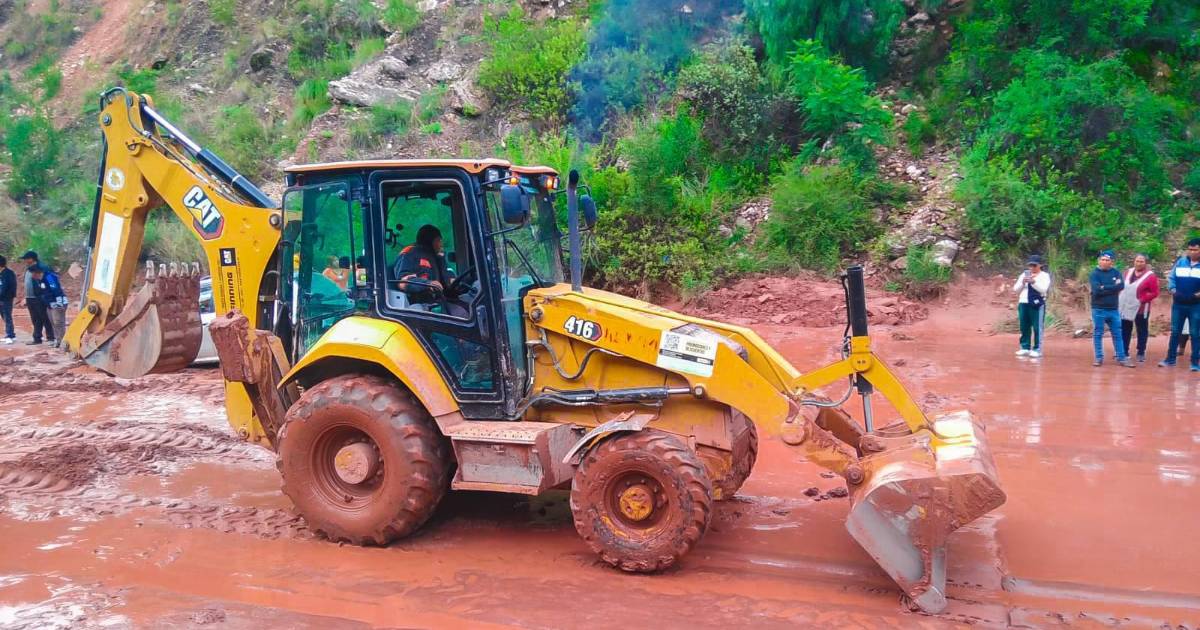 Un carril de la carretera fue despejado tras remover con maquinaria pesada el lodo que cubrió la ruta por el desborde del río Viloma, en Sipe Sipe, Cochabamba. El paso hacia el occidente sigue cerrado