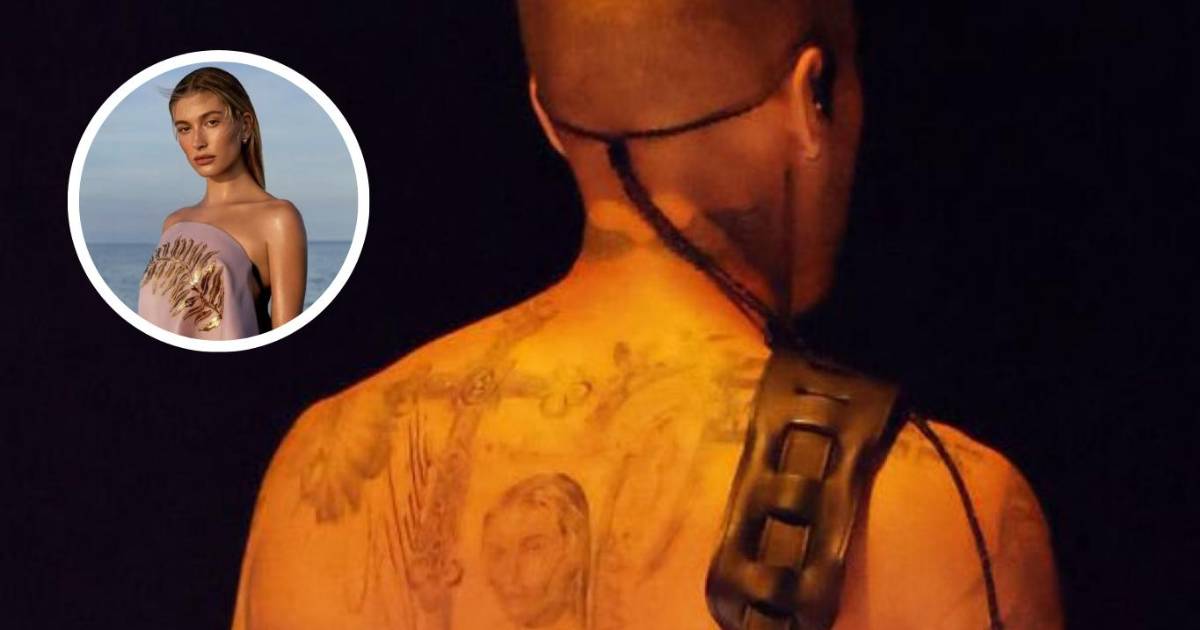 Durante su interpretación del tema ‘Yukon’, Bieber apareció sin polera, vistiendo únicamente boxers y calcetines, pero lo que realmente capturó la atención fue su espalda, donde se dejó ver un tatuaje que retrata el rostro de su esposa, Hailey Bieber.
