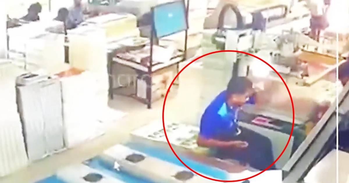 Este hecho se registró en Sri Lanka. En el video se observa que la máquina estaba trabajando normalmente, mientras era operada por dos personas, pero repentinamente el equipo se paraliza.