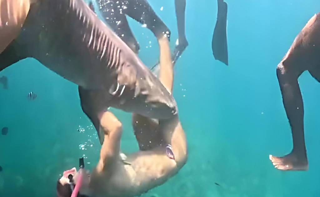 La acción de respuesta rápida de su guía turístico fue clave para que salvar su vida. Este golpeó el lomo del tiburón nodriza varias veces hasta que logró que la soltara.