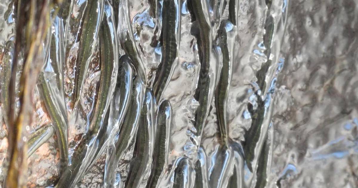 En el video compartido por Scientific Reports se observa a un grupo de peces como pegados en un muro vertical. Por algunos momentos se observa que algunos de estos animales realizan movimientos para trepar, mientras cae el agua.