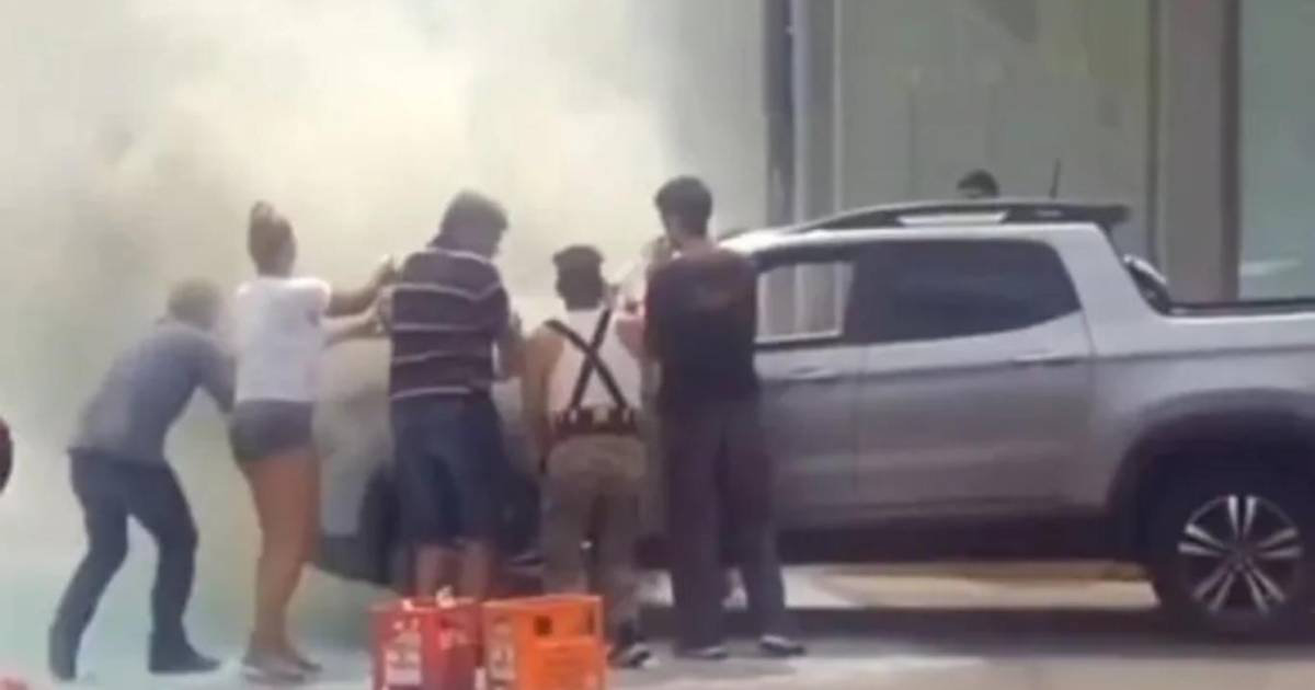 Una escena insólita se vivió en Pergamino, Argentina, cuando una camioneta se prendió fuego en plena vía pública y la rápida reacción de dos repartidores de gaseosas evitó que el incendio se propagara.