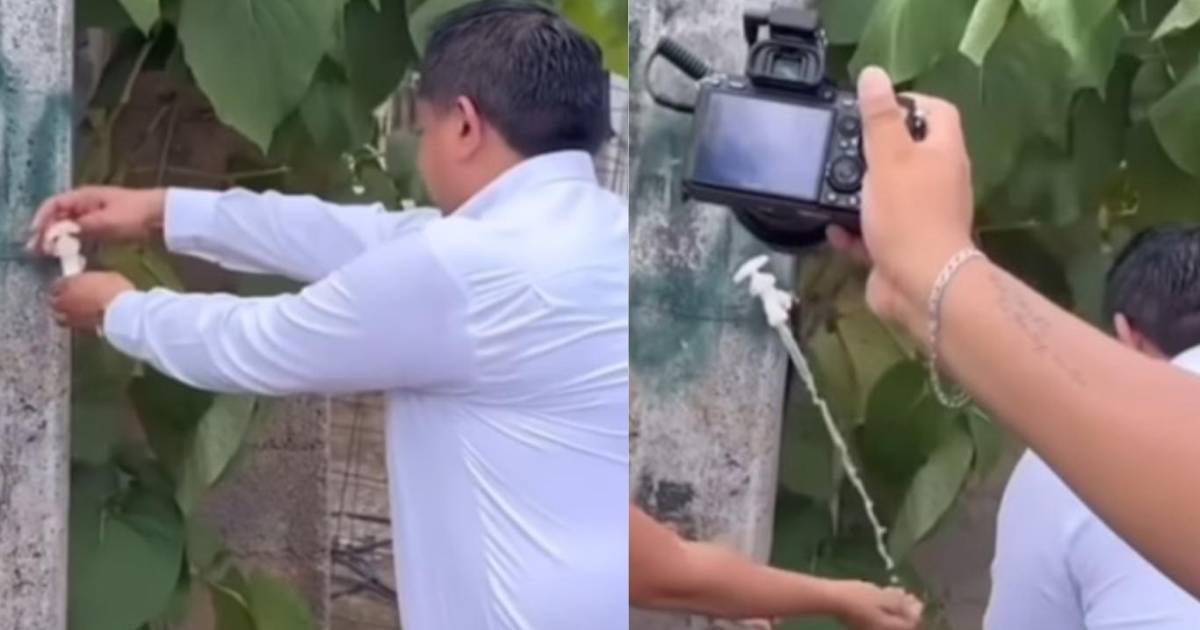 En redes sociales circula un video que muestra al alcalde de Valladolid, Yucatán (México), Homero Novelo, presentando una insólita ceremonia: la inauguración de un grifo de agua montado sobre un pilar de cemento.