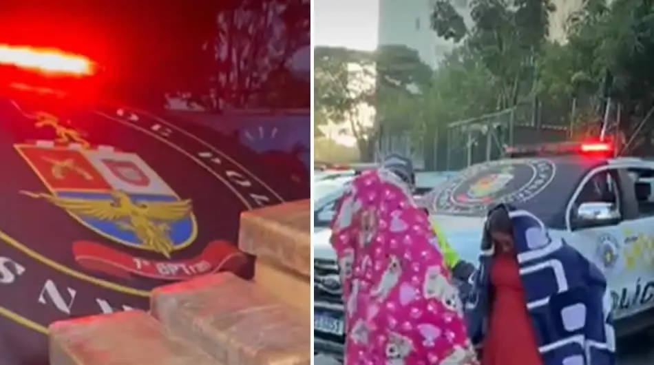 En las imágenes publicadas por el medio Balanco Geral se observa a varias mujeres sentadas sobre el piso, con el rostro cubierto, mientras son custodiadas por los agentes policiales.