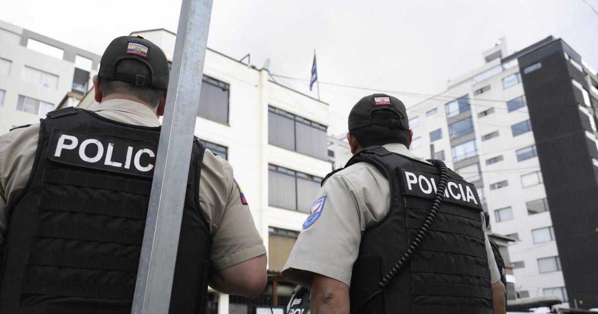 Un periodista de la agencia AFP observó a varios militares fuertemente armados y policías caminar por los exteriores de la embajada cubana en Quito.