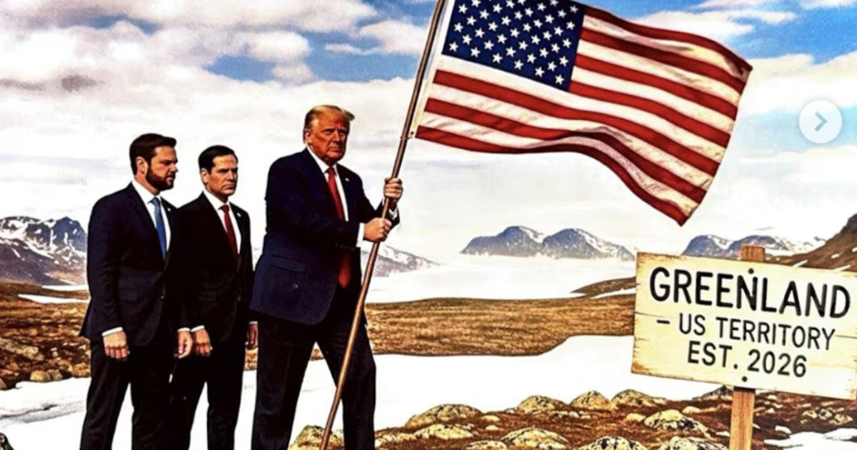 El presidente de Estados Unidos, Donald Trump, ha generado una fuerte polémica al publicar una imagen en su red social Truth, donde se le ve plantando la bandera estadounidense en Groenlandia, acompañado de su secretario de Estado, Marco Rubio, y su vicepresidente, J.D. Vance.