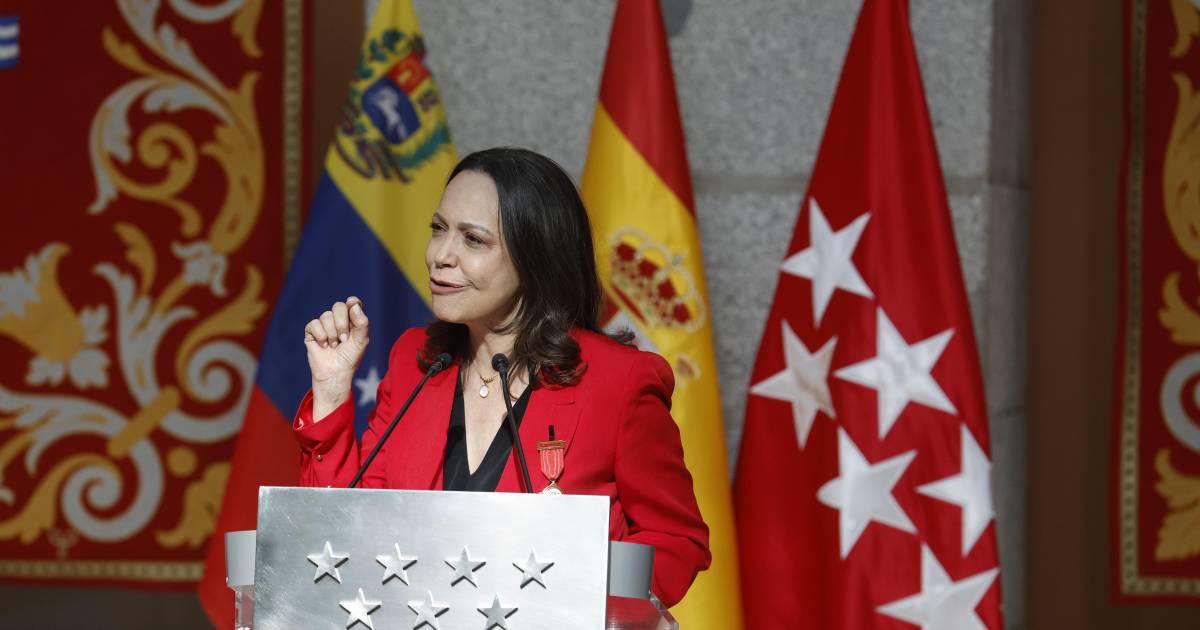 María Corina Machado, la líder opositora venezolana, recibió este sábado de la presidenta de la Comunidad de Madrid, Isabel Díaz Ayuso, la Medalla de Oro de esta región española y dijo, con la medalla colocada en la chaqueta, “siento que esta tarde en Madrid comienza nuestro retorno”.
