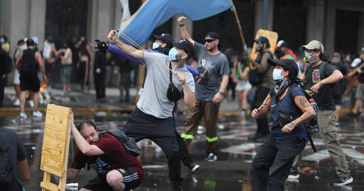 Lo que sí dijo Monteoliva es que los manifestantes pertenecían a “grupos de izquierda” que actuaron “de manera organizada, con violencia premeditada y armamento casero para agredir y generar caos”.