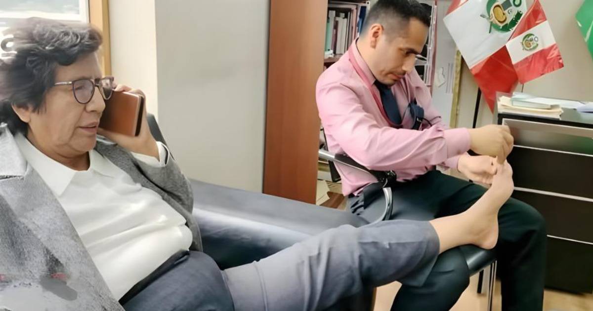 El reportaje de Cuarto Poder mostró una fotografía, de noviembre del año pasado, en la que Vásquez aparece sentada en un sillón, mientras habla por su celular, con uno de los pies sobre el regazo de su asesor Edward Rengifo, quien le corta las uñas.