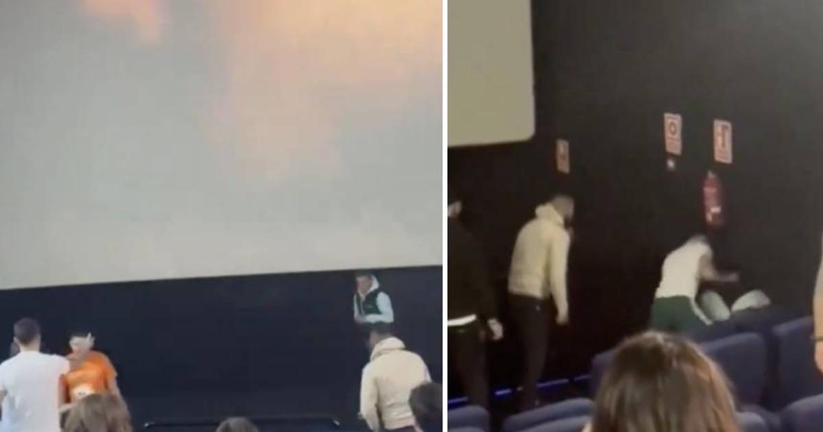 Familias ingresaron a la sala del cine para apreciar una película, pero se toparon con un hombre que gritaba y trataba de golpear a su pareja. Terminó recibiendo una paliza.