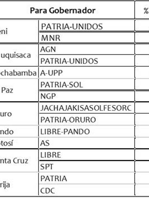 Veamos primero para gobernadores de los nueve departamentos.