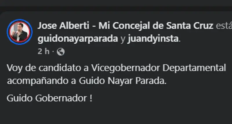 El concejal cruceño José Alberti (C-A) confirmó este viernes que irá como candidato a vicegobernador del frente Primero Santa Cruz, que tiene como candidato a gobernador al político Guido Nayar.